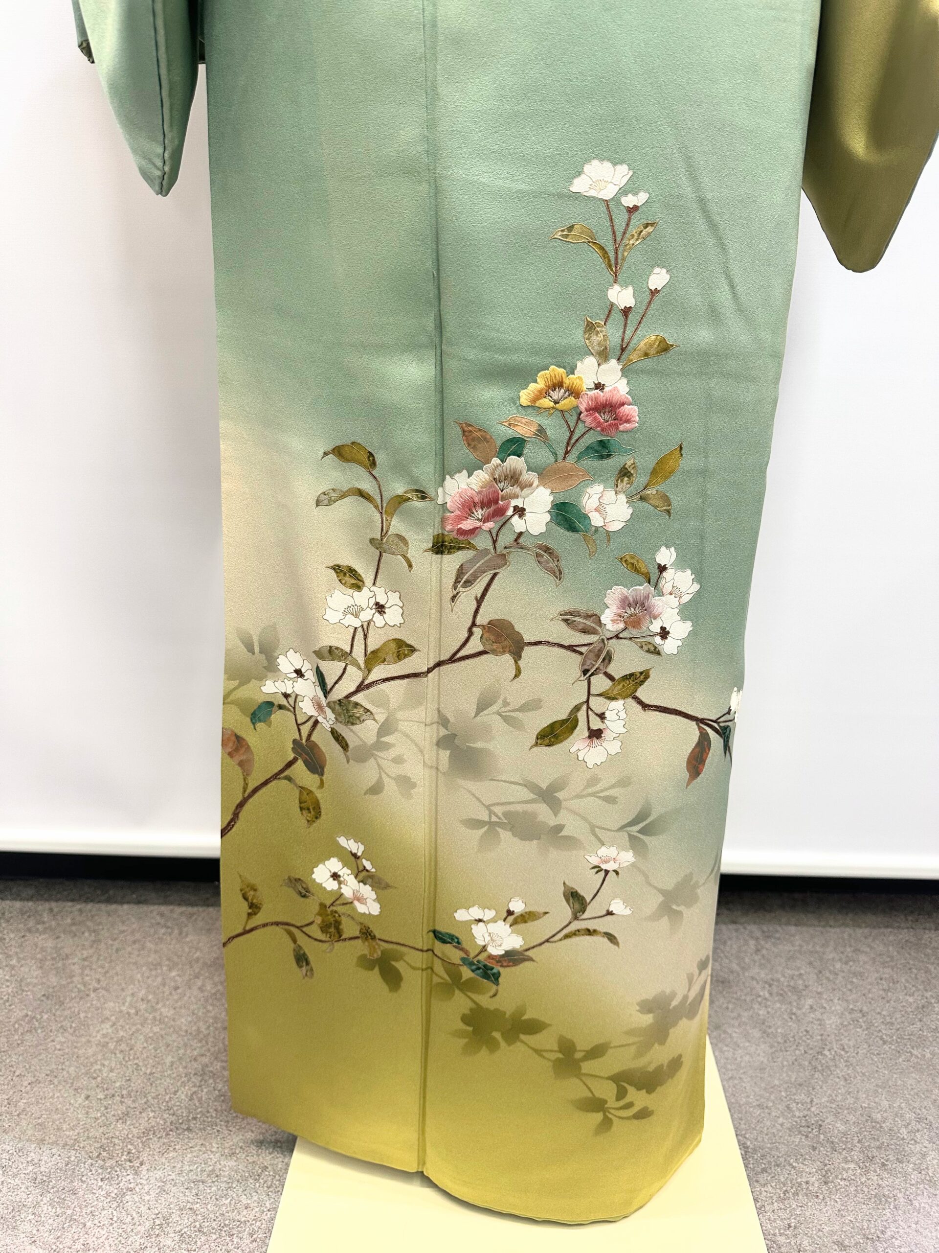 レンタル訪問着【M-2】グリーン花枝グラデーション
