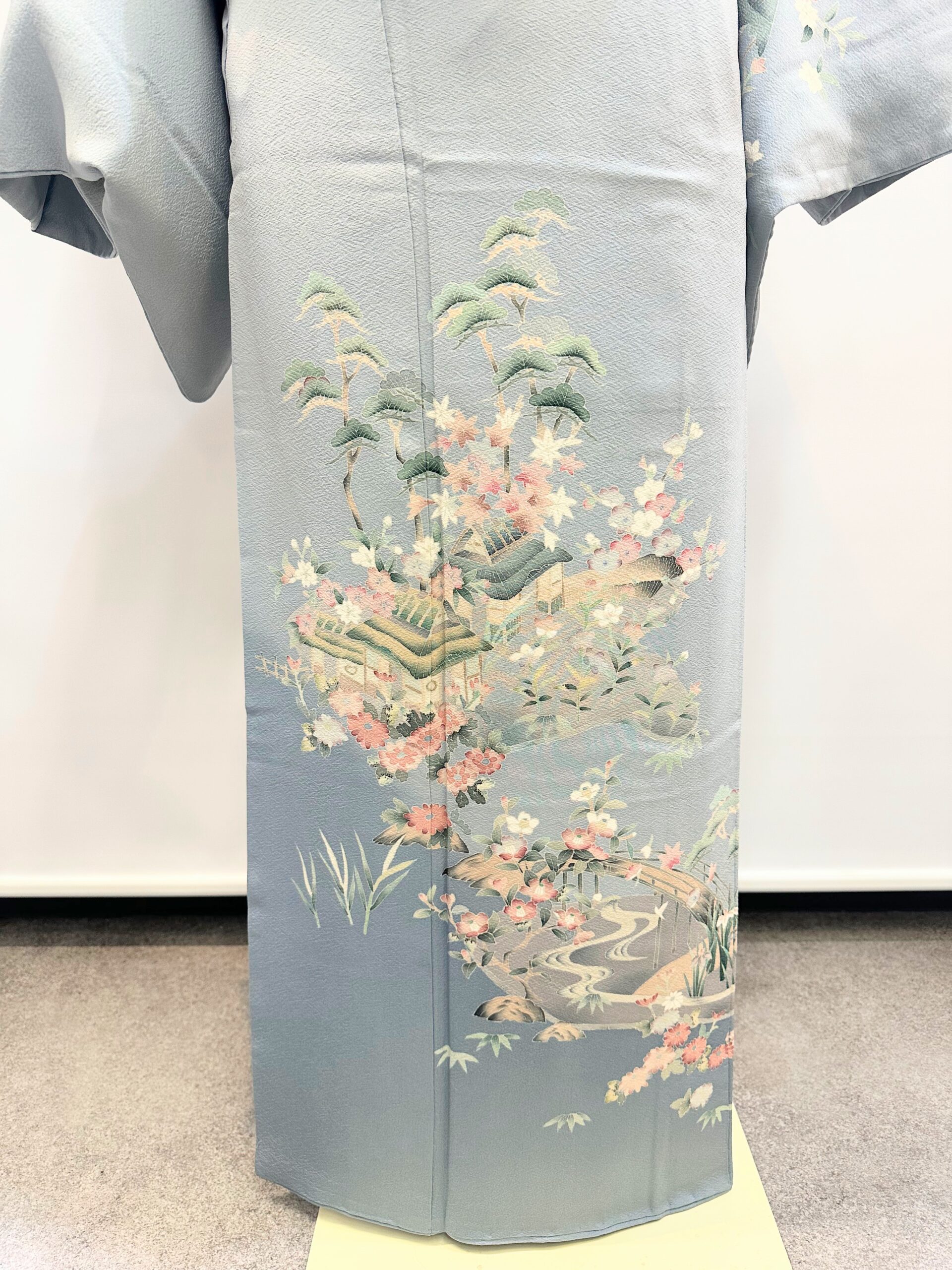 レンタル訪問着【ss-1】ブルーグレー桜と松