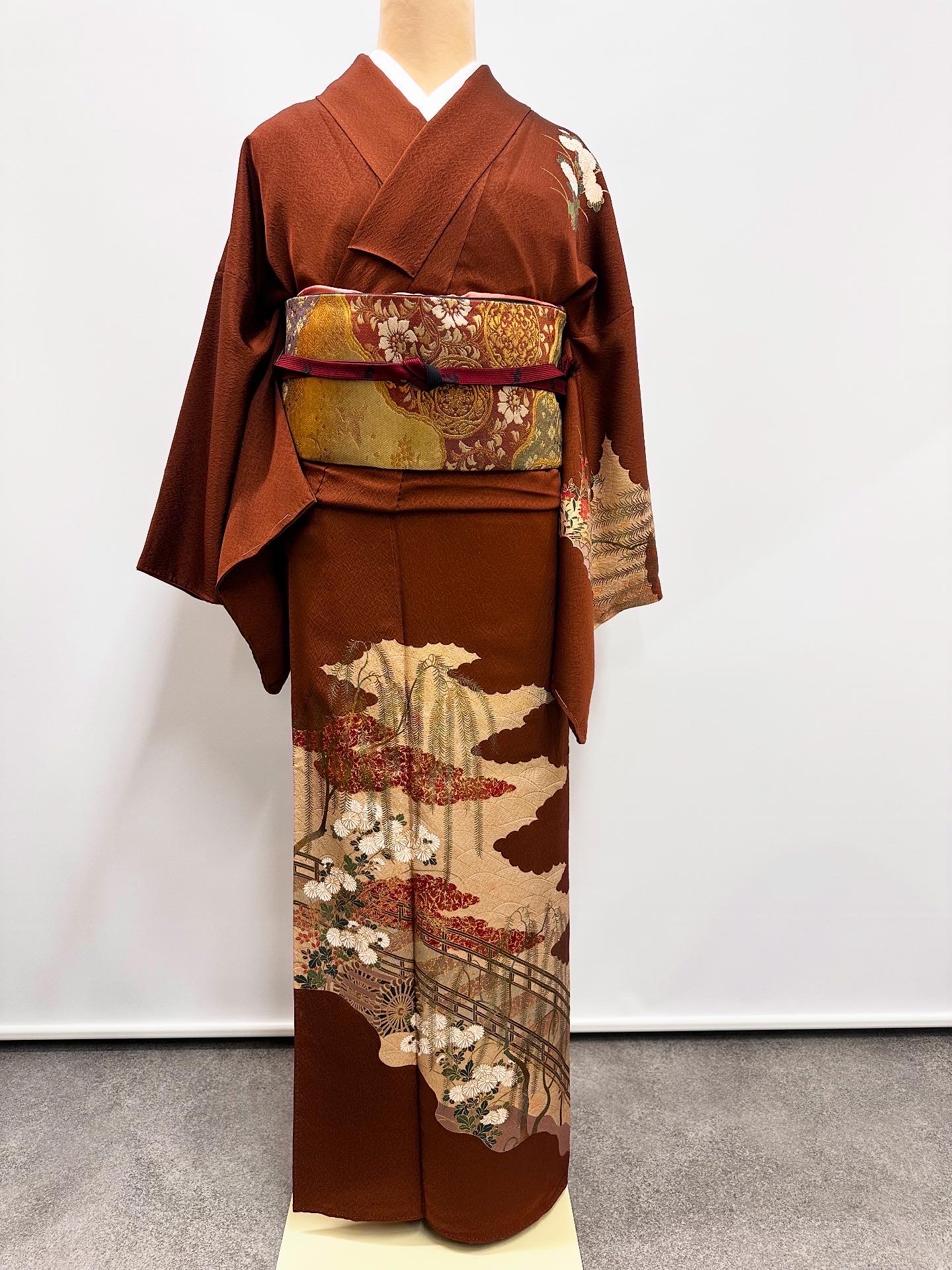訪問着レンタル【M-6】赤茶にゴールド